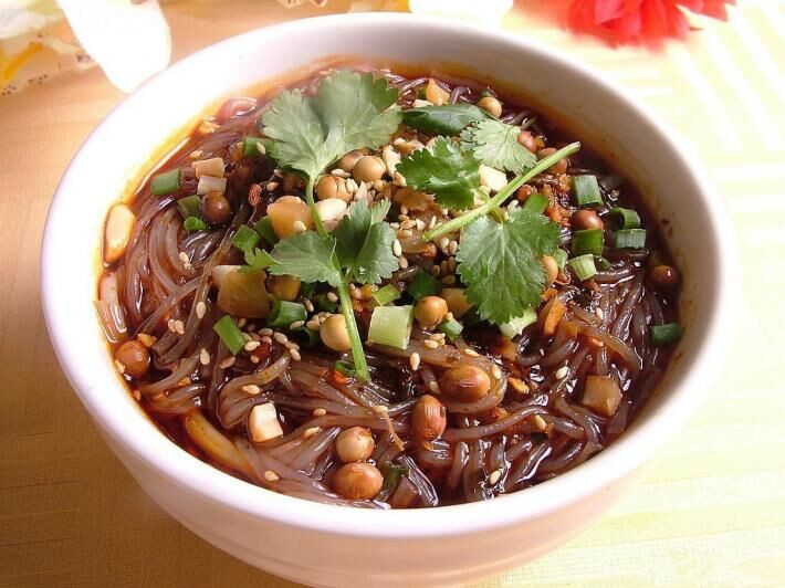食材:干米線、雞脯肉、香菜、香蔥、蒜、干辣椒、榨菜、淀粉、豆瓣醬、老抽